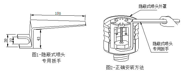 3、本產品隻能下垂安裝,濺(jiàn)水盤(pán)和(hé)感溫麵(miàn)板一起朝下。安裝時先將感溫裝飾麵板(和(hé)全銅內罩焊接(jiē)成一體)卸下,再用專用扳手將噴頭和外罩(zhào)一起安裝在(zài)管網的管路上,然後再套上內罩(zhào)。